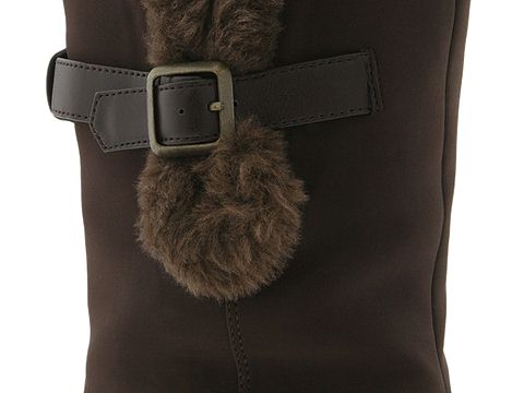 Water-repellent upper features an adjustable buckle.